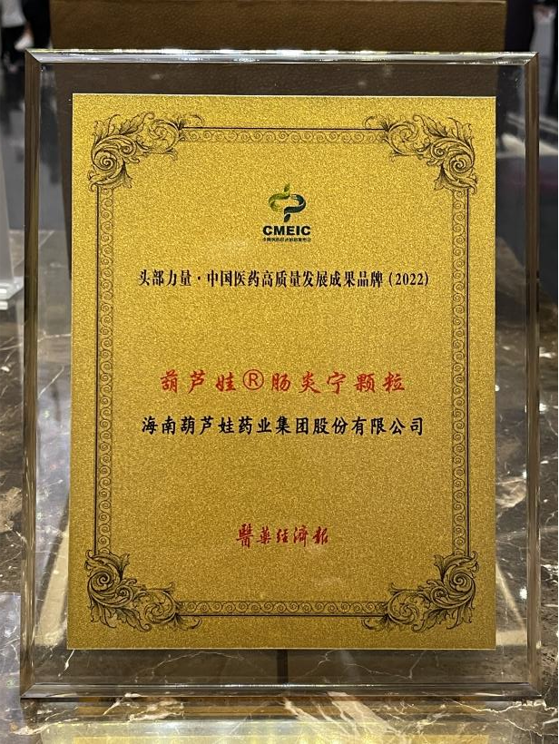 在本次发布会上,公司重点产品IM电竞牌肠炎宁颗粒同时荣膺“头部力量·中国医药高质量发展成果品牌(2022)”。IM电竞牌肠炎宁颗粒(2g),传承经典名方,临床广泛用于成人及儿童急慢性胃肠炎、腹泻等疾病的治疗,由于其杰出的临床价值,被纳入国家中医药管理局相关专家项目组制定的《中成药治疗小儿腹泻病临床应用指南》。